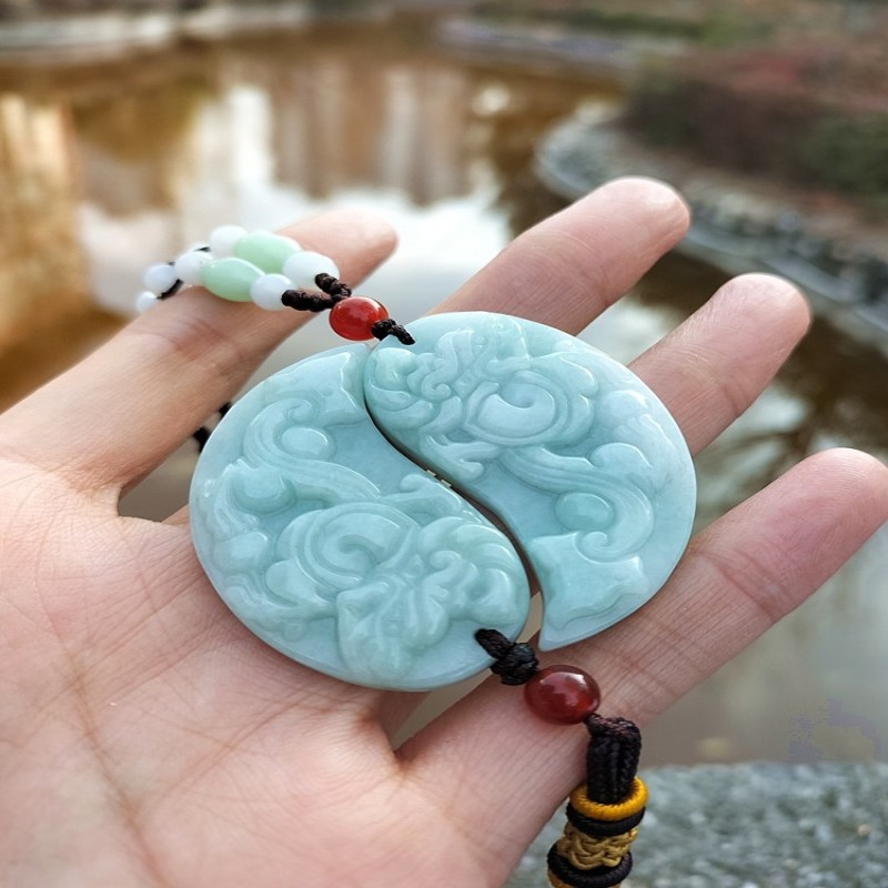 Heart Jade Thread Natural Jade Dragon Phoenix Jade Pendant Tai Chi Fish