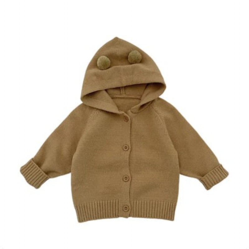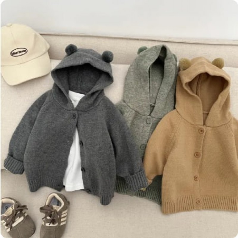 Korean Style Kids Knitted Hoodie Jacket 2025 Autumn New Arrival Unisex Baby Cute Cardigan Infant Autumn Clothes Polyester Fiber