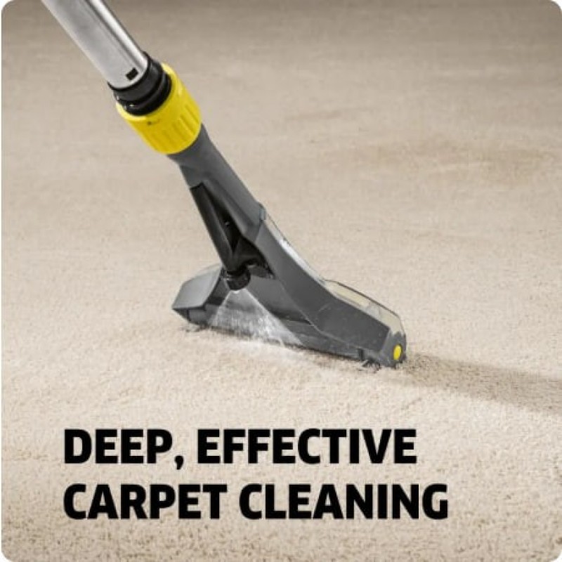 Dengan tekanan semburan 1 bar, mesin ini memastikan pembersihan tekstil yang lembut dan mendalam serta memberikan hasil yang mengagumkan, terutamanya untuk permaidani dan upholsteri. Muncung lantai yang sempit membolehkan pembersihan di ruang sempit, manakala bibir sedutan fleksibel memudahkan pembersihan di kawasan berhalangan. Mesin ini juga dilengkapi dengan penyimpanan aksesori terintegrasi serta bekas air bersih dan kotor 2-dalam-1 yang boleh ditanggalkan.