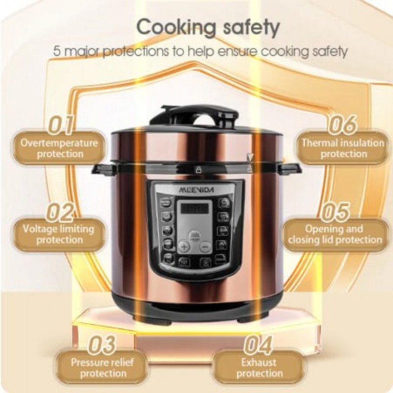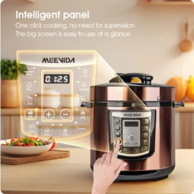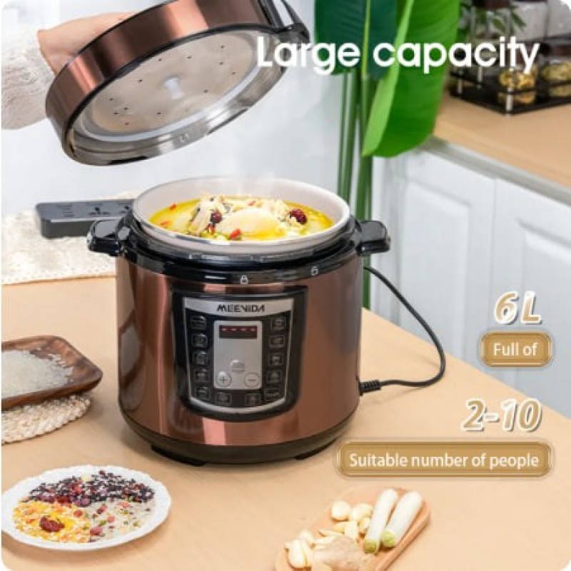 MEEVIDA Pelapik Aluminium Bersalut Seramik Non Stick 6L Periuk Tekanan Elektrik Pintar Digital Elektrik Berbilang Periuk Isi Rumah Berkapasiti Besar