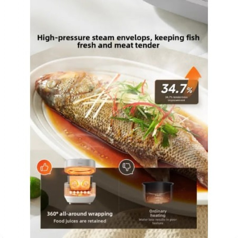 Equipped with smart features, this electric pressure cooker can handle a variety of cooking tasks, from boiling to steaming.
