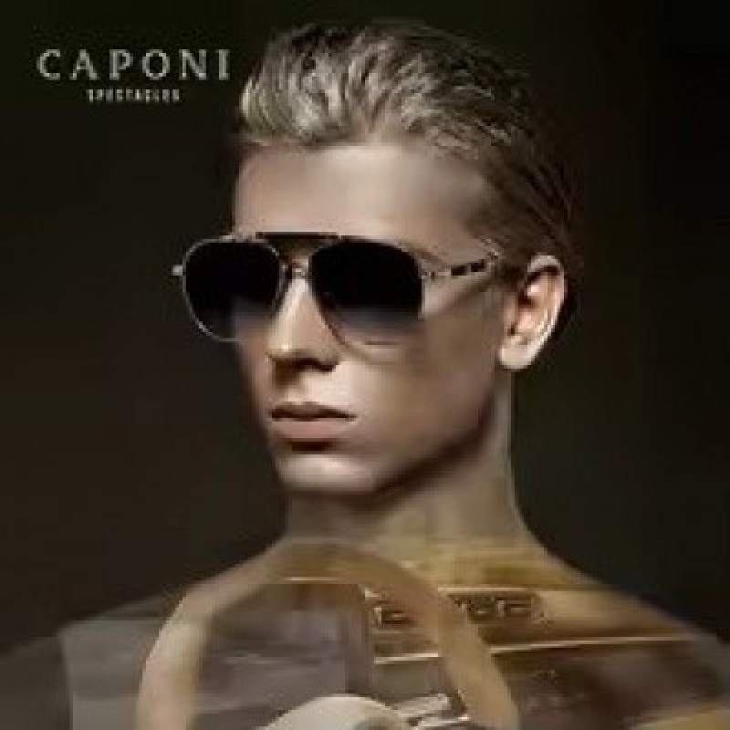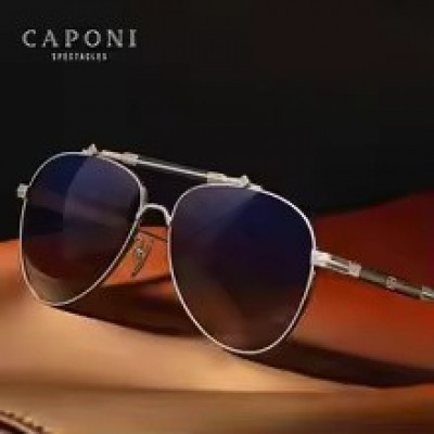 Cermin Mata Hitam Terpolarisasi Nilon Definisi Tinggi CAPONI Lelaki, Cermin Mata Hitam Kecerunan Titanium Tulen, Perlindungan UV400, Gaya Aviator, Luar, CP7537
