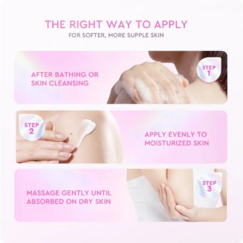 Apply a generous amount onto hands and body, massage gently in circular motion until fully absorbed
